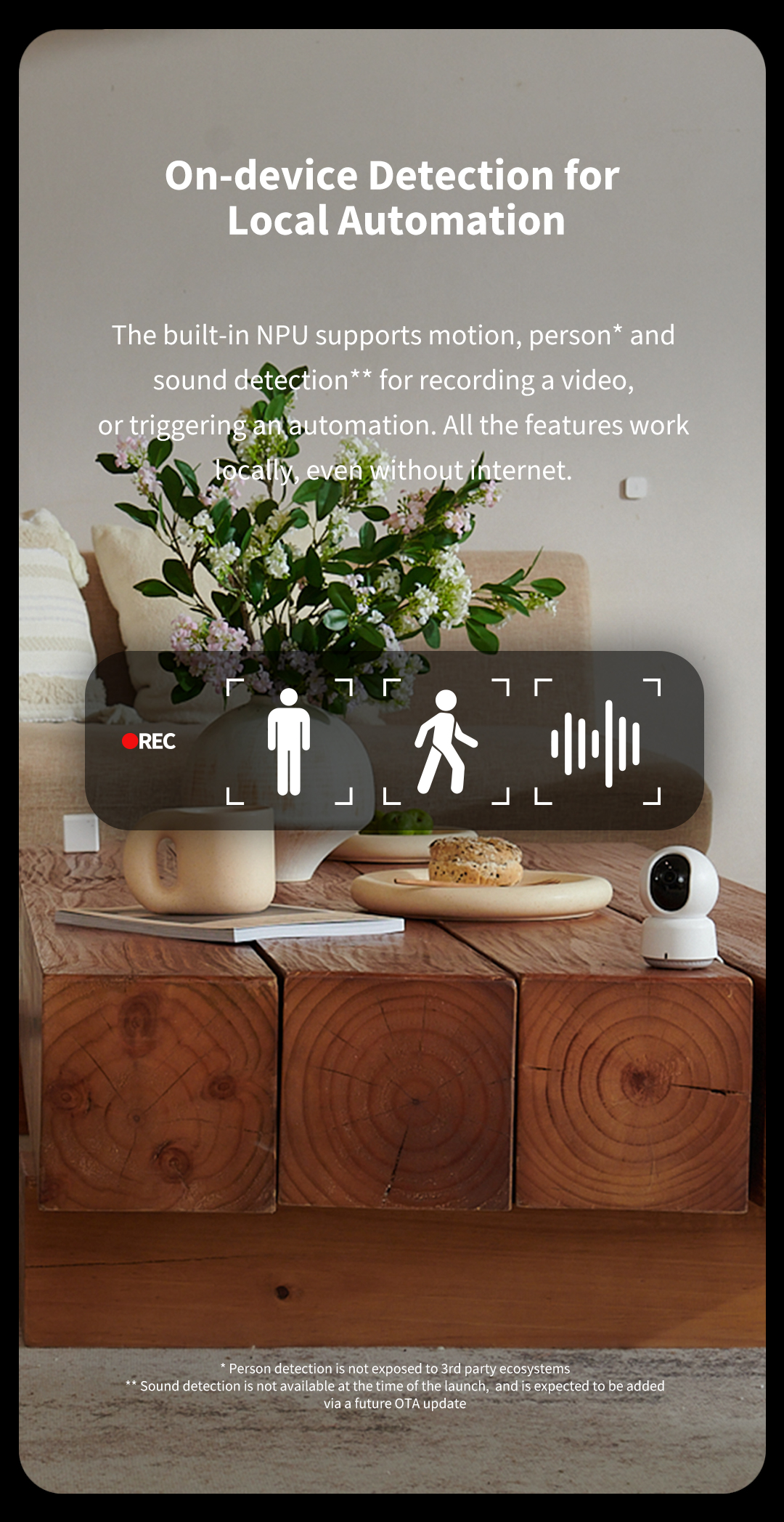 Camera thông minh E1 có thể nhận ra hình dạng con người và thực hiện các cú đánh theo dõi 350 độ. Hơn nữa, nó vẫn có thể đạt được tích hợp với nhiều thiết bị thông minh hơn dựa trên hệ sinh thái đa danh mục của Aqara thông qua theo dõi con người AI. Ví dụ, khi Nó phát hiện ai đó trong hành lang, có thể kích hoạt đèn bật*. Khi cảm biến cửa và cửa sổ trên cửa chính phát hiện có ai mở cửa, E1 sẽ quay đến một vị trí cụ thể để chụp chính xác.